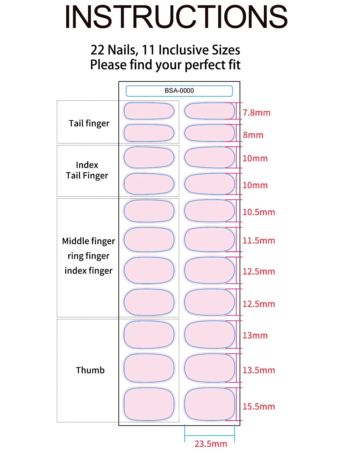 20 Double-ended Gel Nail Strips (Multiple sizes for a perfect fit)